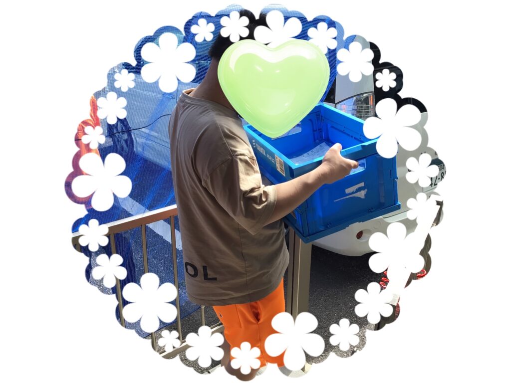 朝は納品に行く為に製品を車に載せてくれました。自分達が行なった内職を車にのせてくれました。