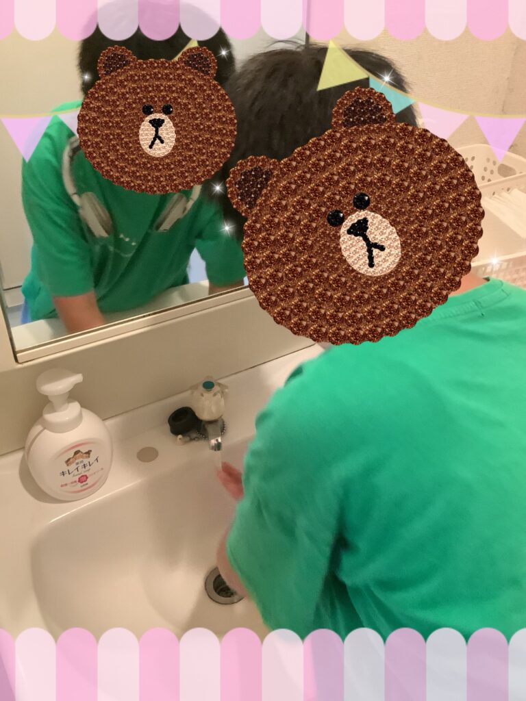 来たらまずは手を洗います。