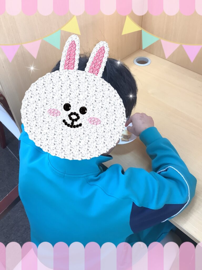 おやつの様子です。みんなでいただきますをしてから食べることが出来ました。