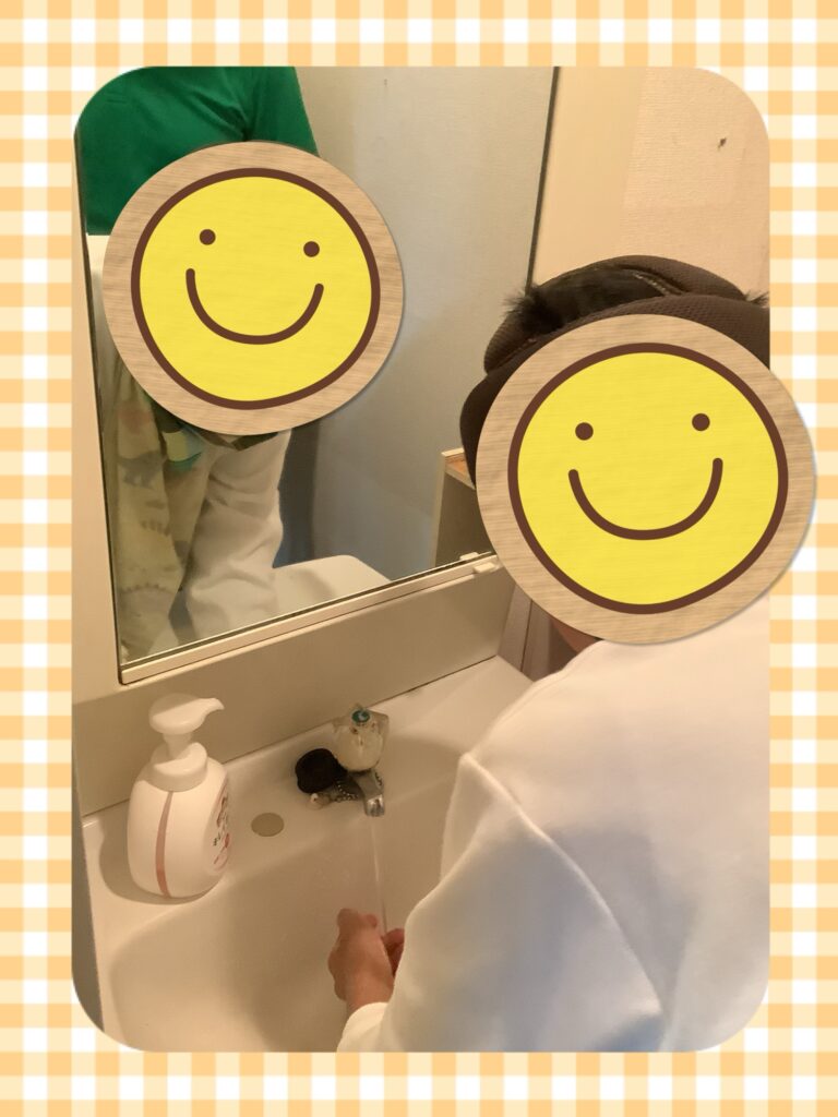 来たらまずは手を洗います。石鹸をつけてゴシゴシと洗う事が出来ましたね。