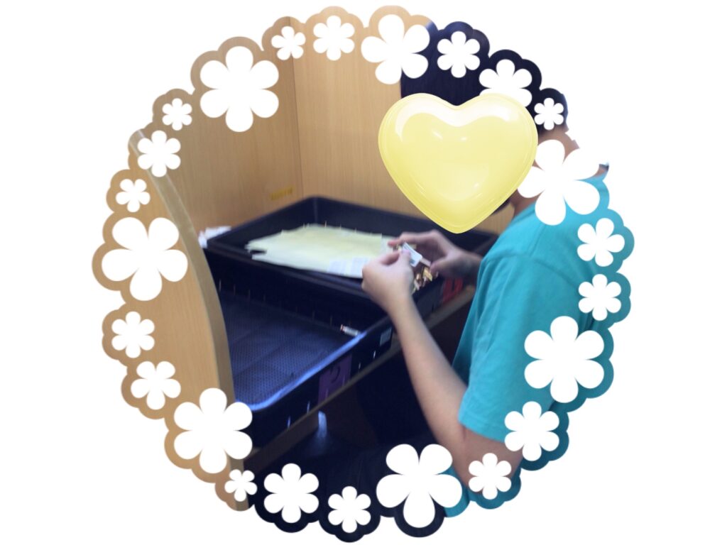 指示書を見ながら利用さん同士貼る位置を確認して作業をされていました。