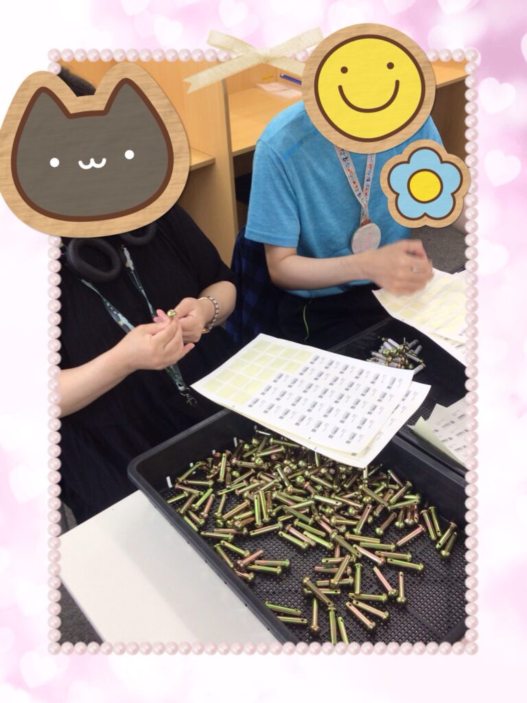 作業指示書をみて貼る位置を確認して作業をされていました。
