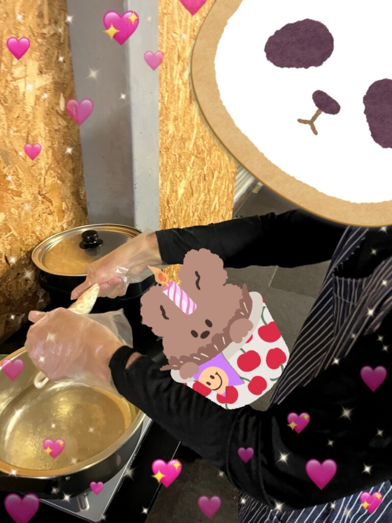 スタッフと一緒に盛り付けを行いました。