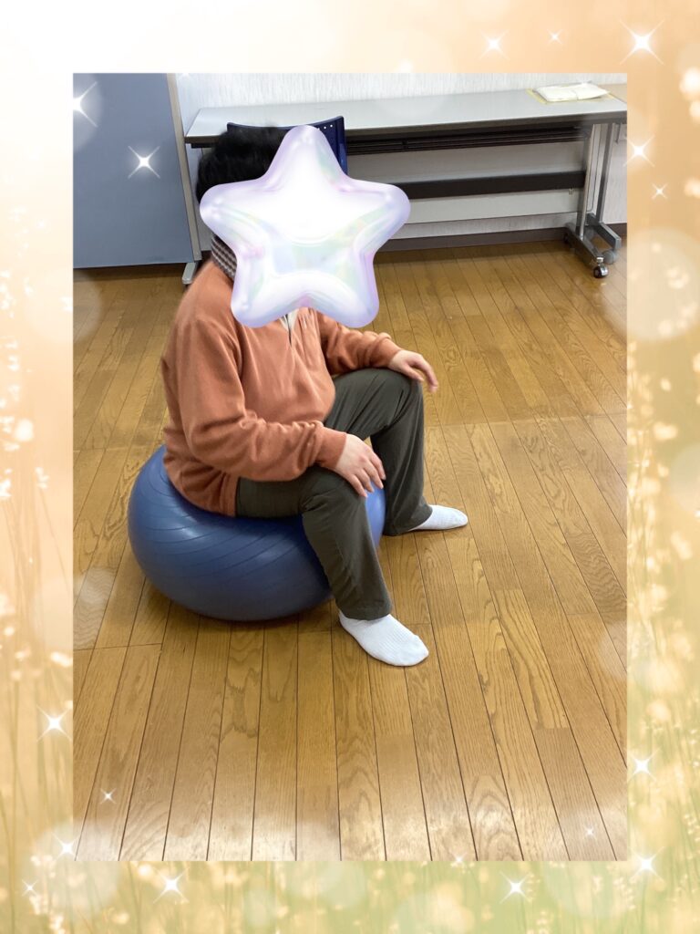 バランスボールで体幹トレーニングしてます。ボールを使い頑張ってやっていましたよ‼️