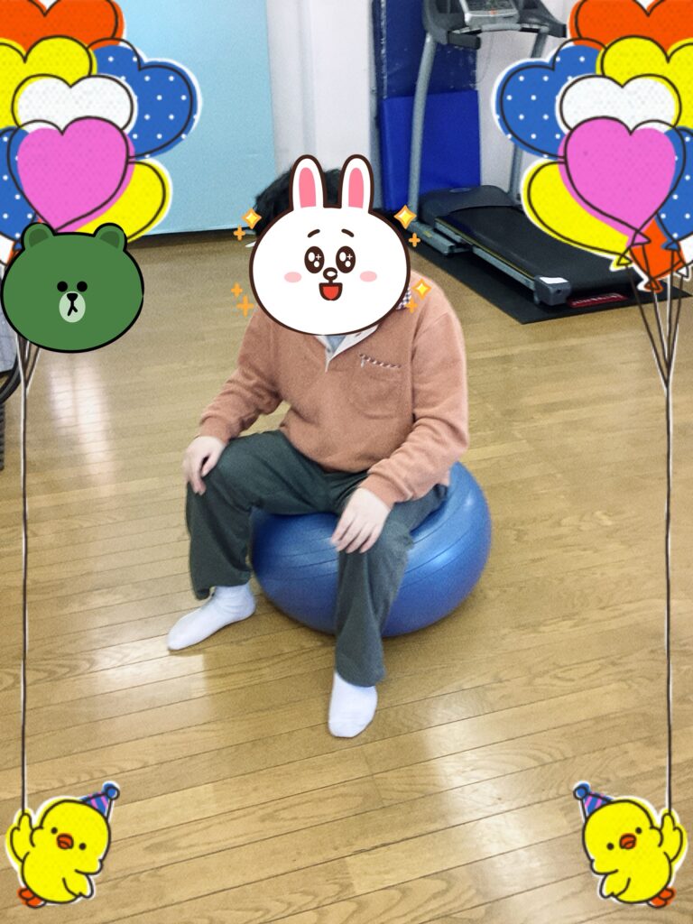 バランスボールで体幹を鍛えてます。こまめに自分からバランスボールで体幹を鍛える努力をしてます‼️