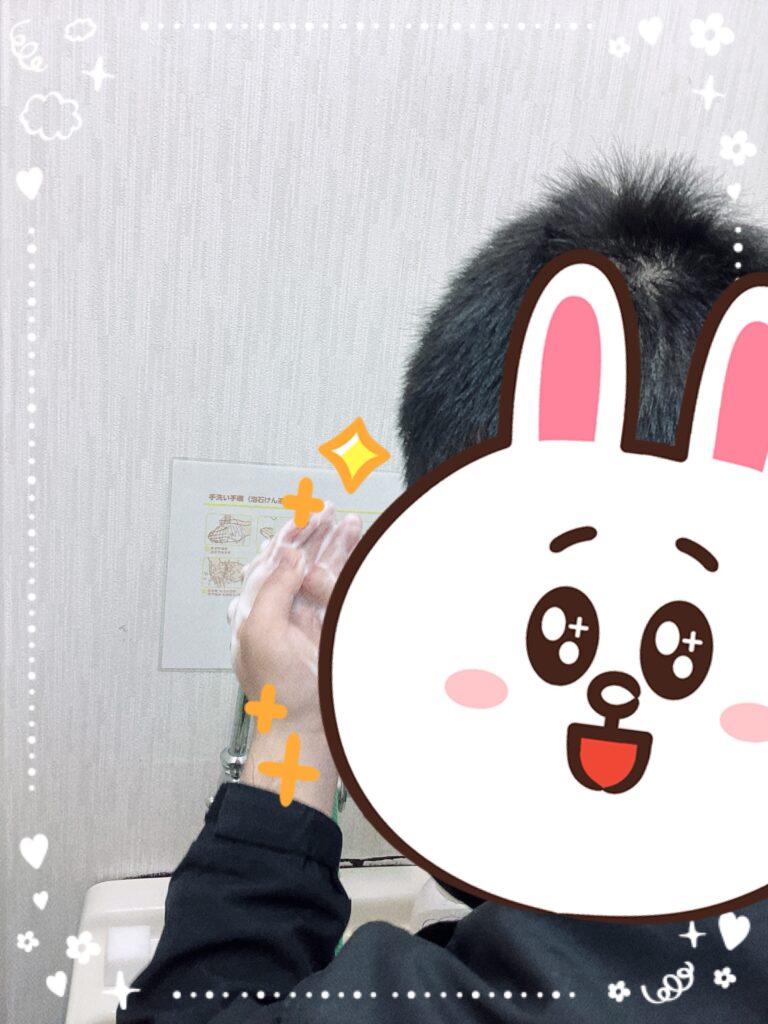 手洗いを行っています。たっぷりの泡で手や指先の隅々までソフトタッチでキレイにしてました🌟