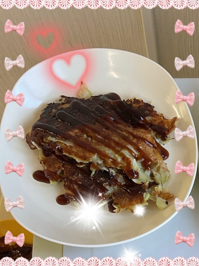 今日は調理実習で、お好み焼きを作りました♪( ´θ`)ノ