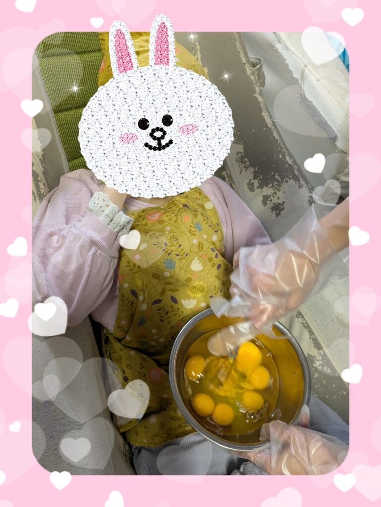 卵を混ぜてくれました。卵が溢れないよう上手に混ぜることが出来ましたね。