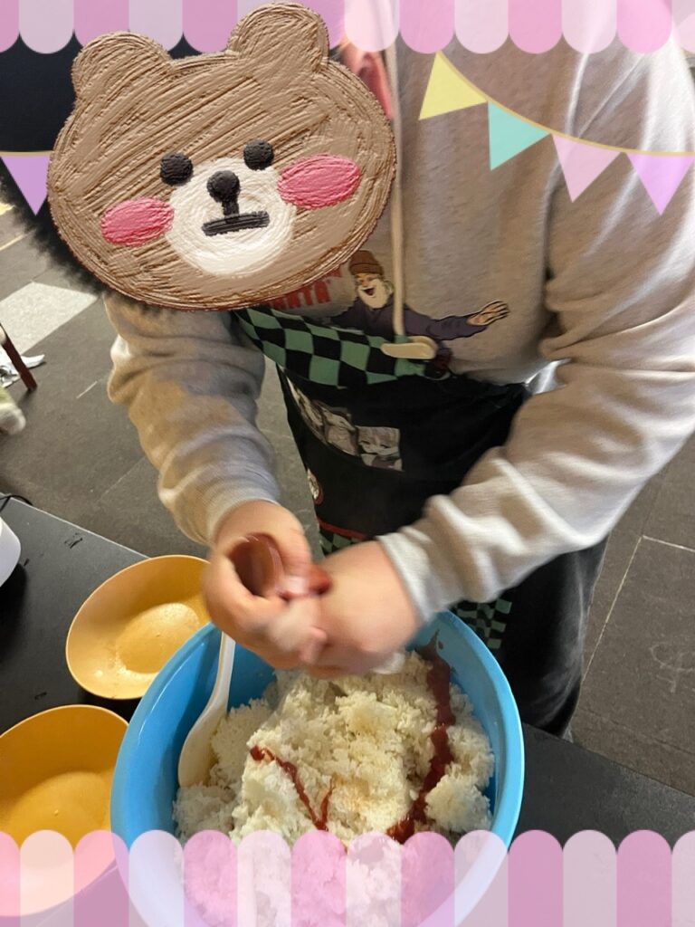 ご飯にケチャップをかけてくれました!10人前なのでご飯もたくさんですね✨
