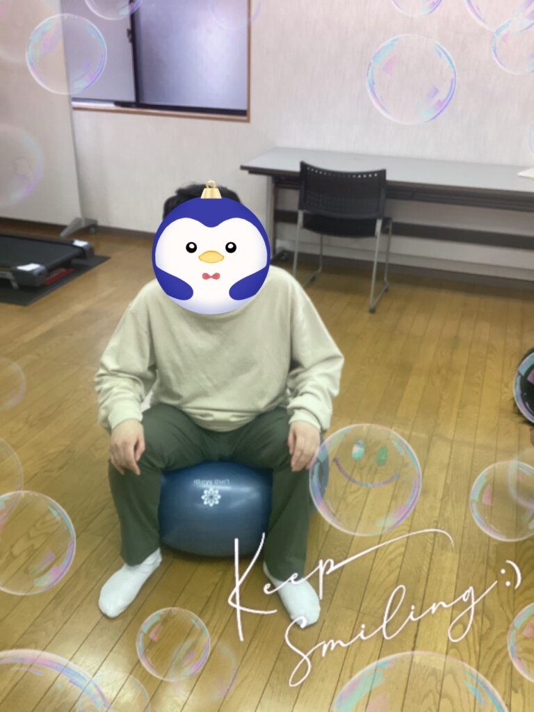 バランスボールを使い体幹を鍛えたます。ボールでバランスをとり頑張って黙々としていました^ – ^