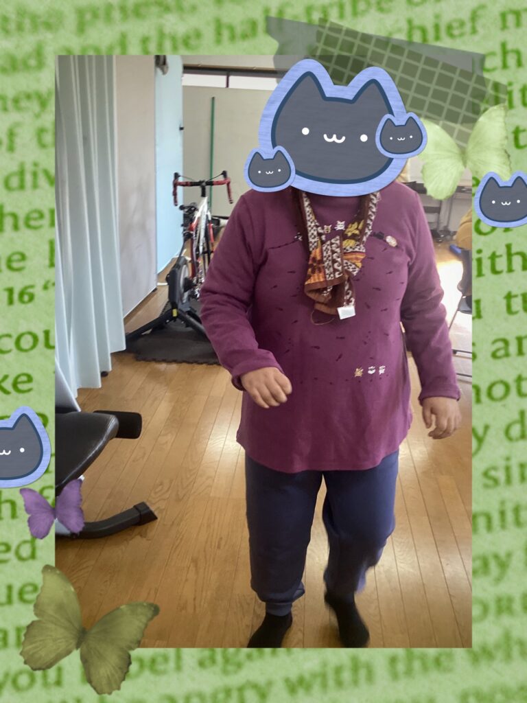 歩行訓練をしてます。ゆっくりでしたが部屋を何回も往復して歩行訓練をして頑張りました☆