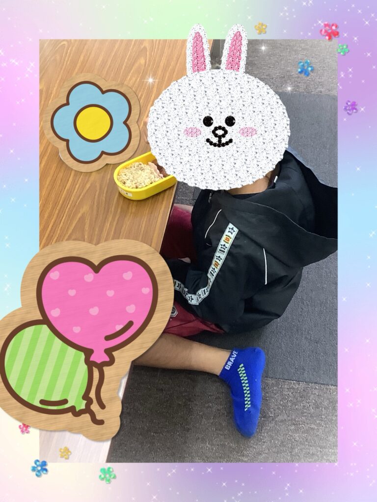 昼食の様子です。手を合わせていただきますをしてから食べることが出来ました。