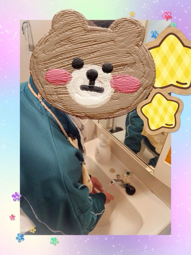 手洗いの様子です。石鹸をつけて丁寧に洗うことが出来ました。