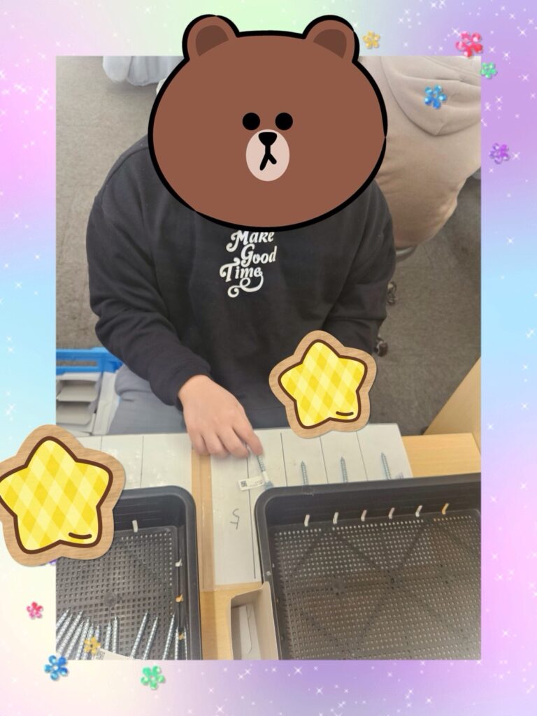 完成品を箱に入れて行きます。シートを使って間違えないように行う事ができました!