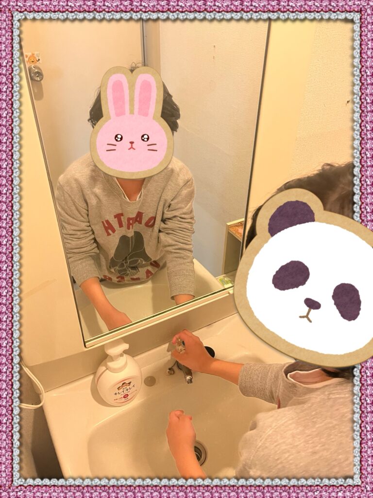 石けんを使い、手のひらや指のあいだ、手の甲まで意識しながら、丁寧に手を洗うことができました。
