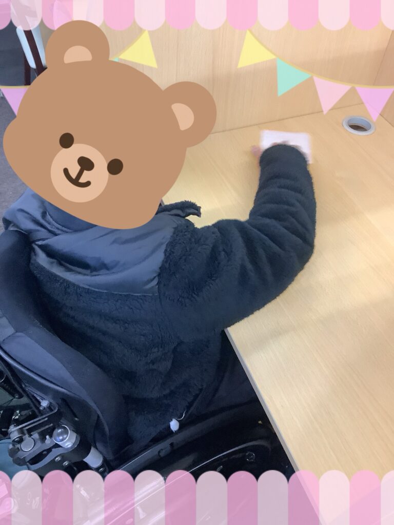 机拭きの様子です。アルコールシートを使って隅から隅まで丁寧に拭いてくれました!