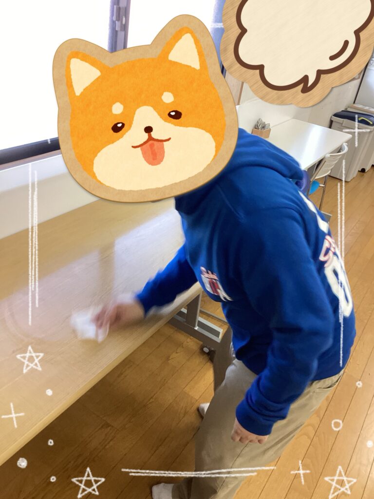 みんなが使った後の机を、消毒でキレイに拭いてくださる方もいます。