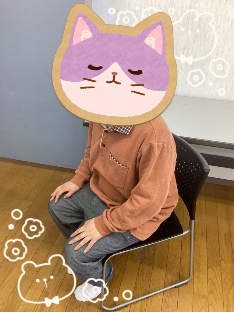 部屋の中は暖かくしていたので、利用者さんによっては座ってくつろぐ姿も。写真を撮ることを伝えたら綺麗に座る姿を見せてくれました!