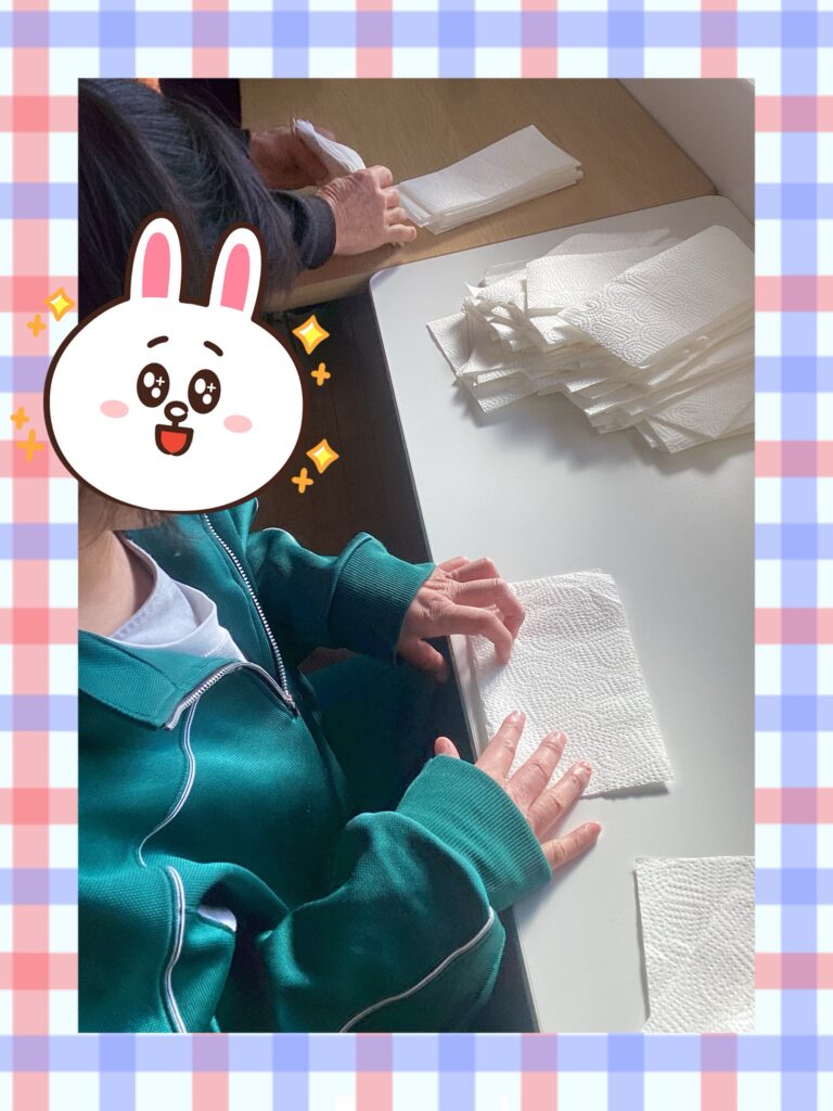 今日も、キッチンペーパー折り頑張ってくださいました。