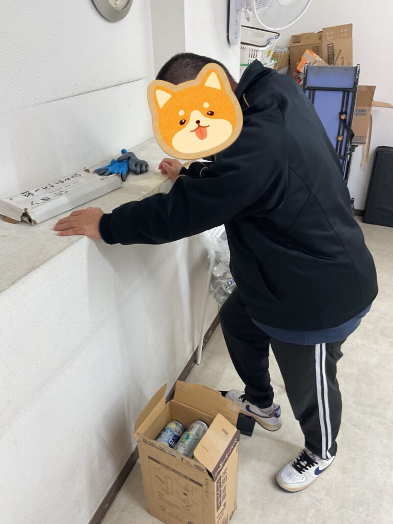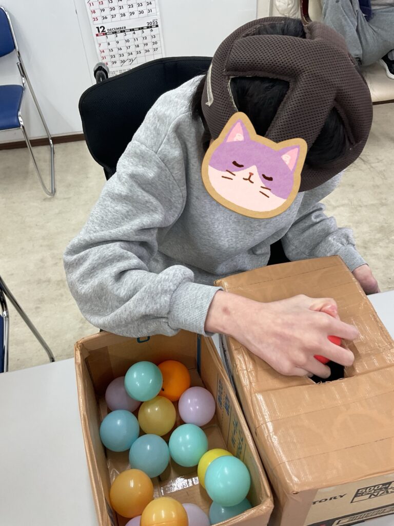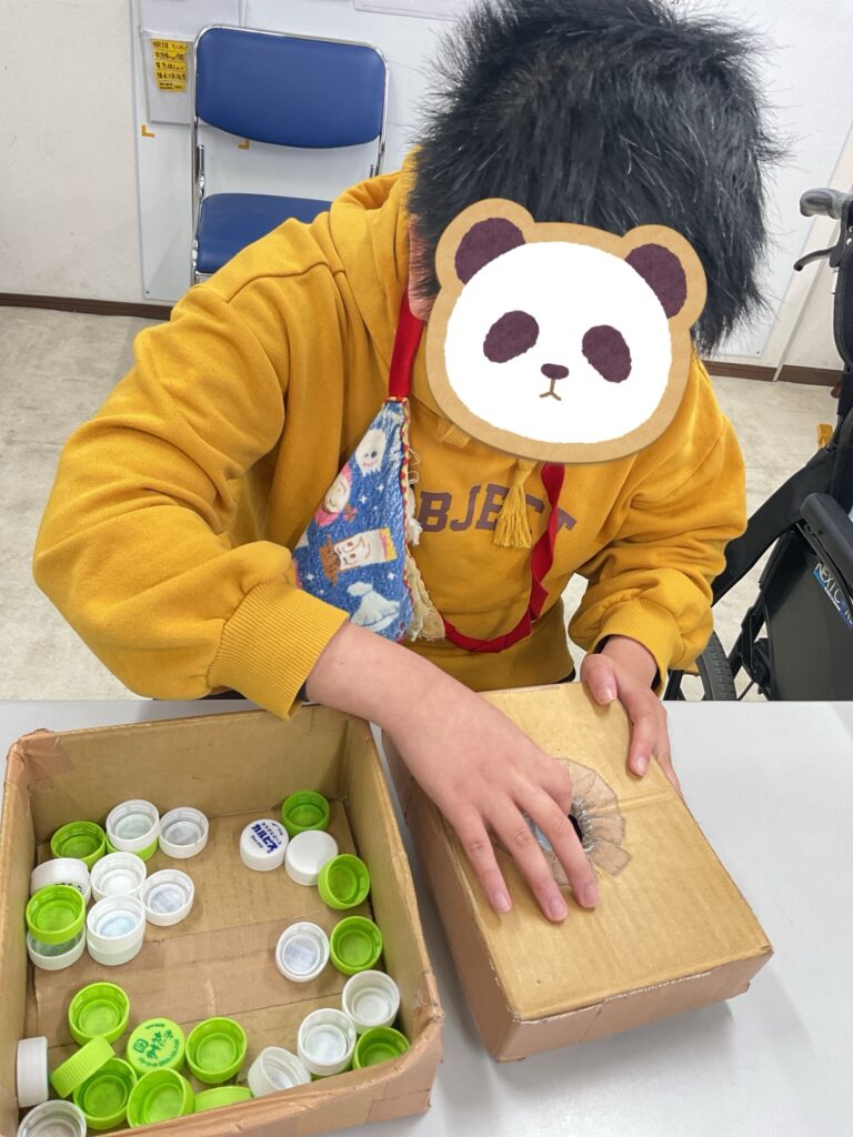 頑張ってペットボトルの蓋箱の中に入れてます。