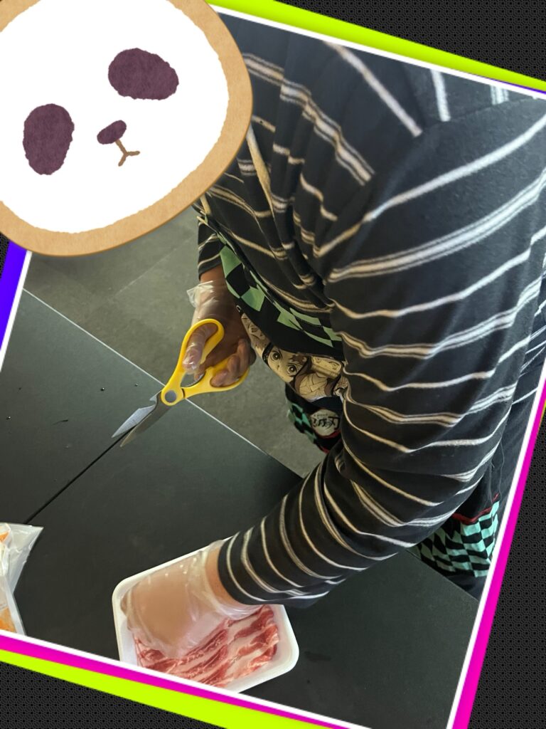 ハサミを使ってお肉を一口サイズに細かく切ってくれました!