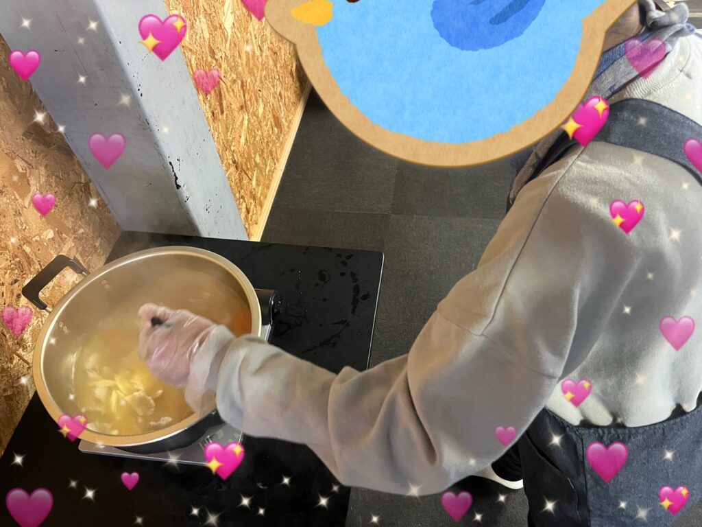 出来上がったら盛り付けをしてみんなで美味しく食べました!