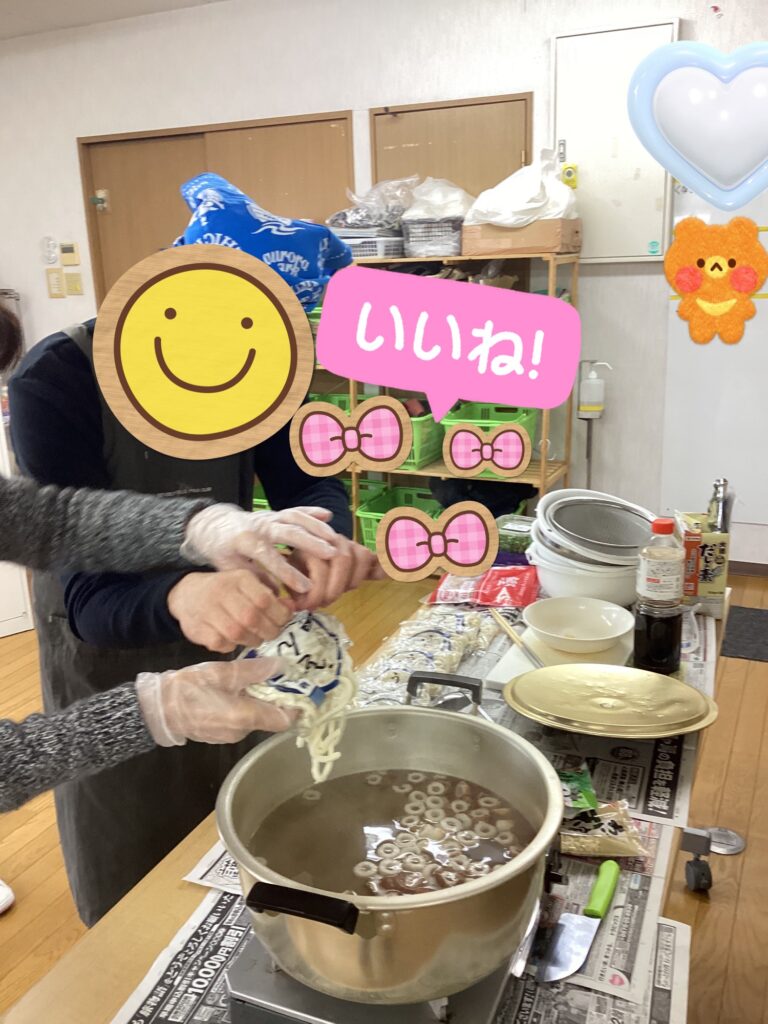 今日は、調理実習の日。あたたかいうどんを作りました。