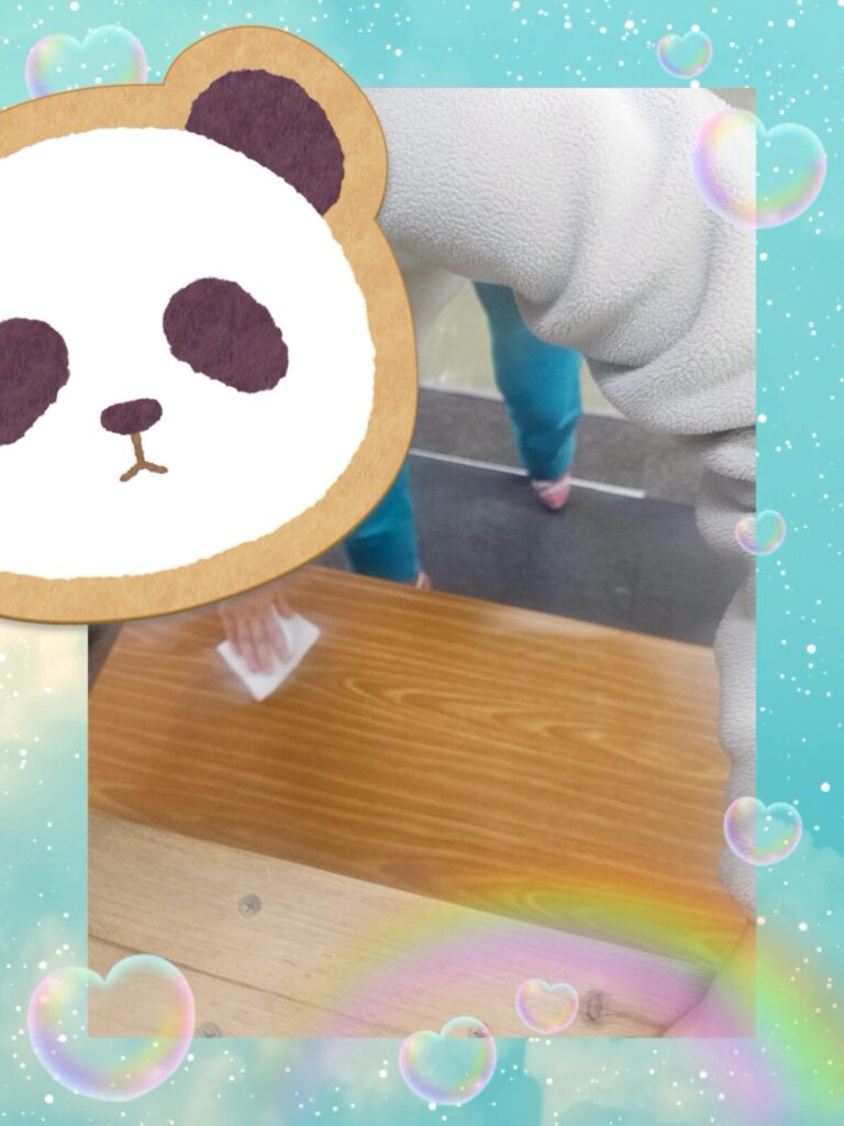 お友達が使った所まで、自分からやると言って拭いてくれました!優しいですね!