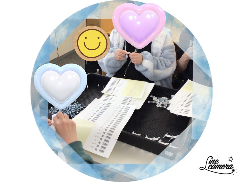 確認をしながらシールを貼っています。