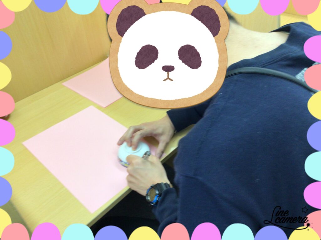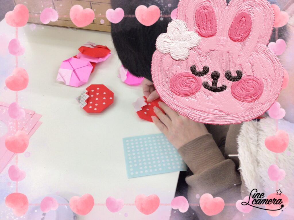ピンクの画用紙で色とりどりの