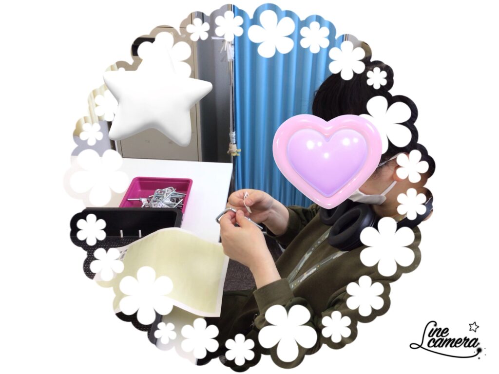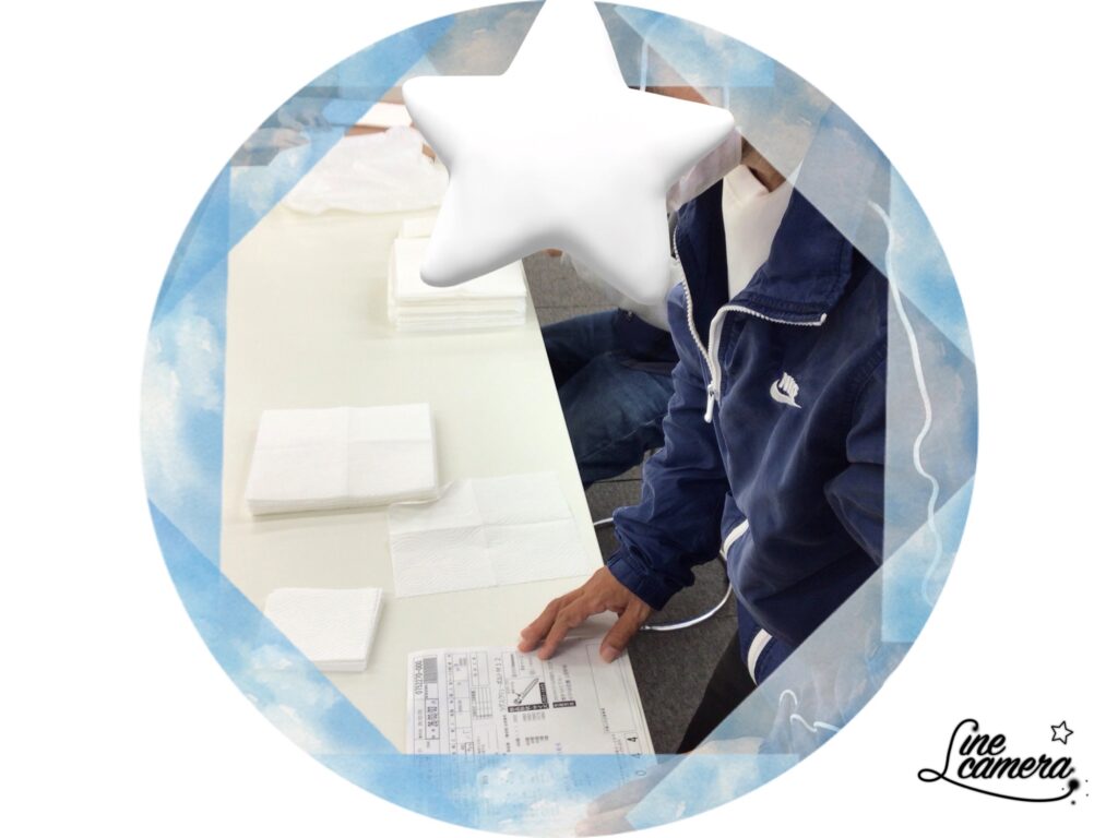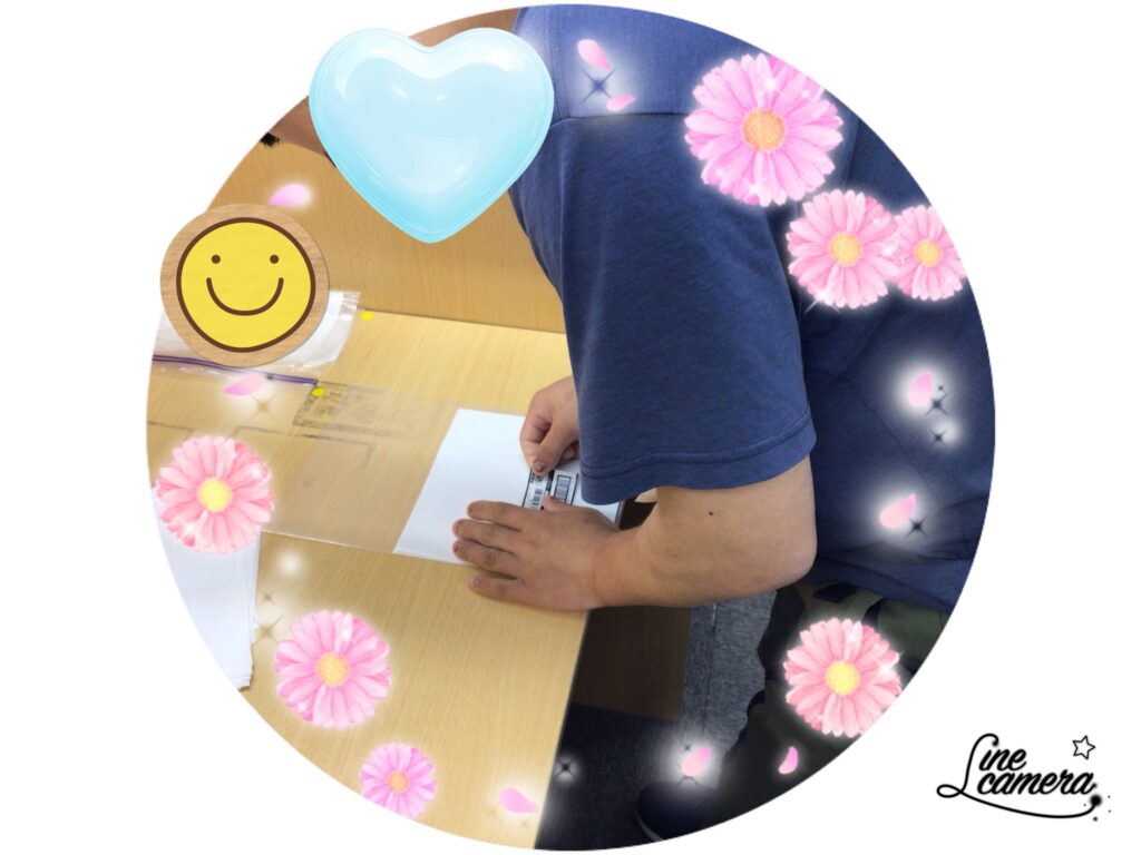 指示書を確認しながら貼ります。利用者さん同士