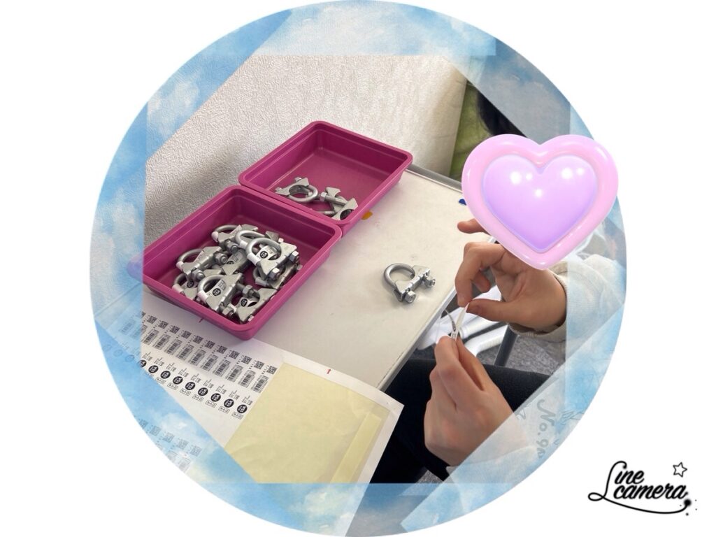 部品のシール貼り