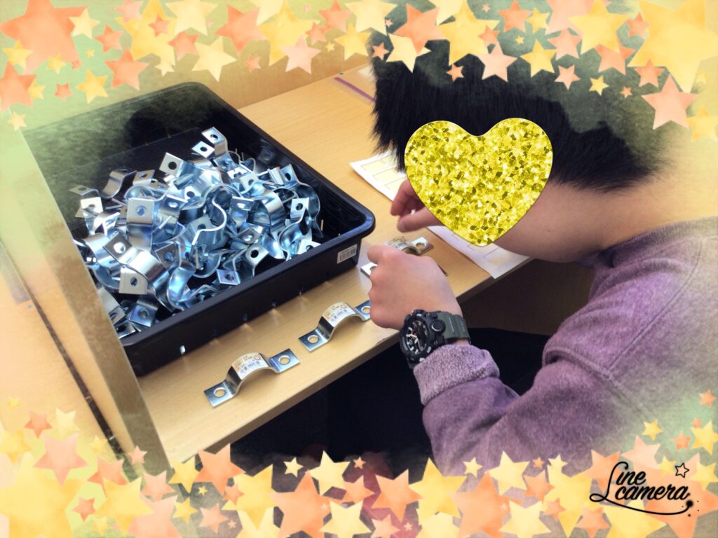 部品のシール貼り