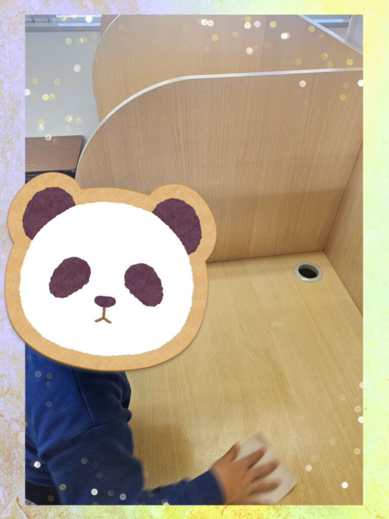 今日は、お友達が使ったところも自分からやると言って拭いてくれました!