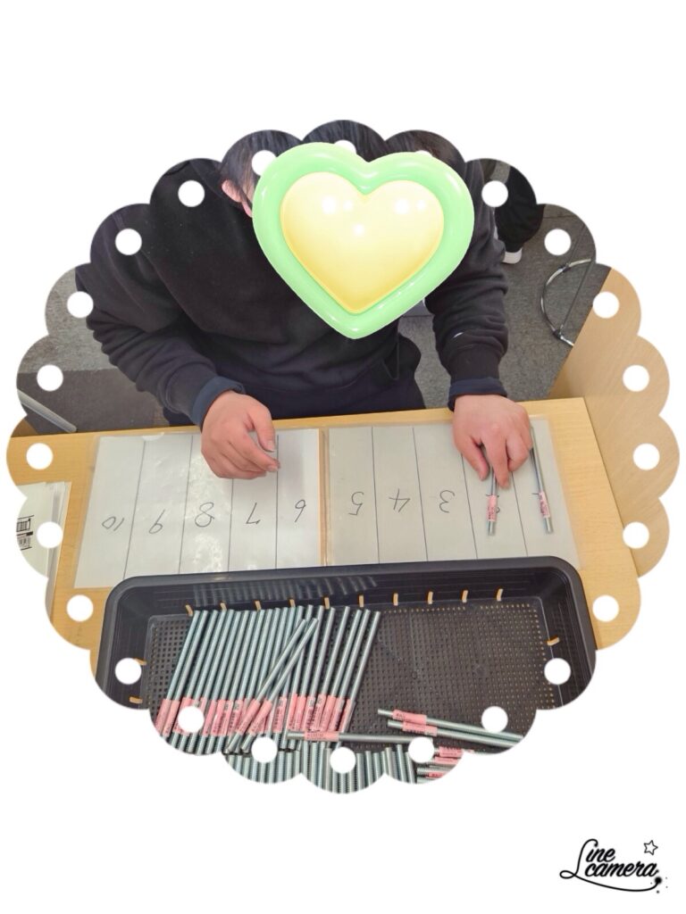 見本を見ながらシール貼りをします。