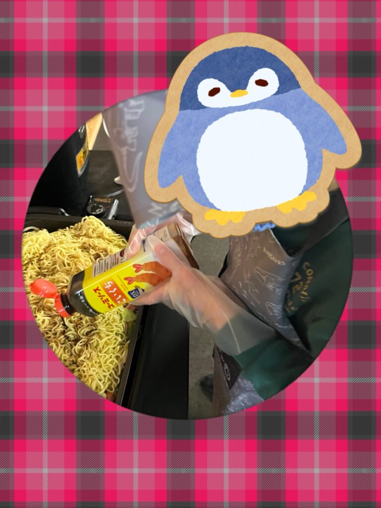 お皿に焼きそばをのせて、自分の分をきれいに整えました。
