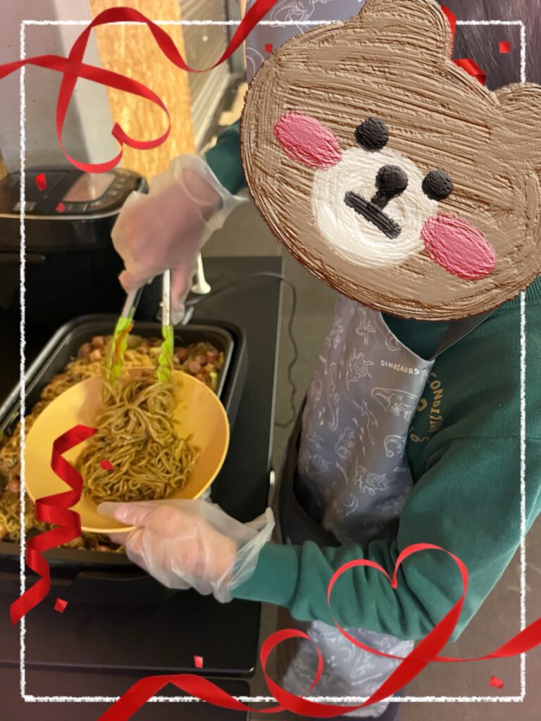 「できた!」「はやく食べたい!」と、完成した焼きそばを嬉しそうに見ていました。