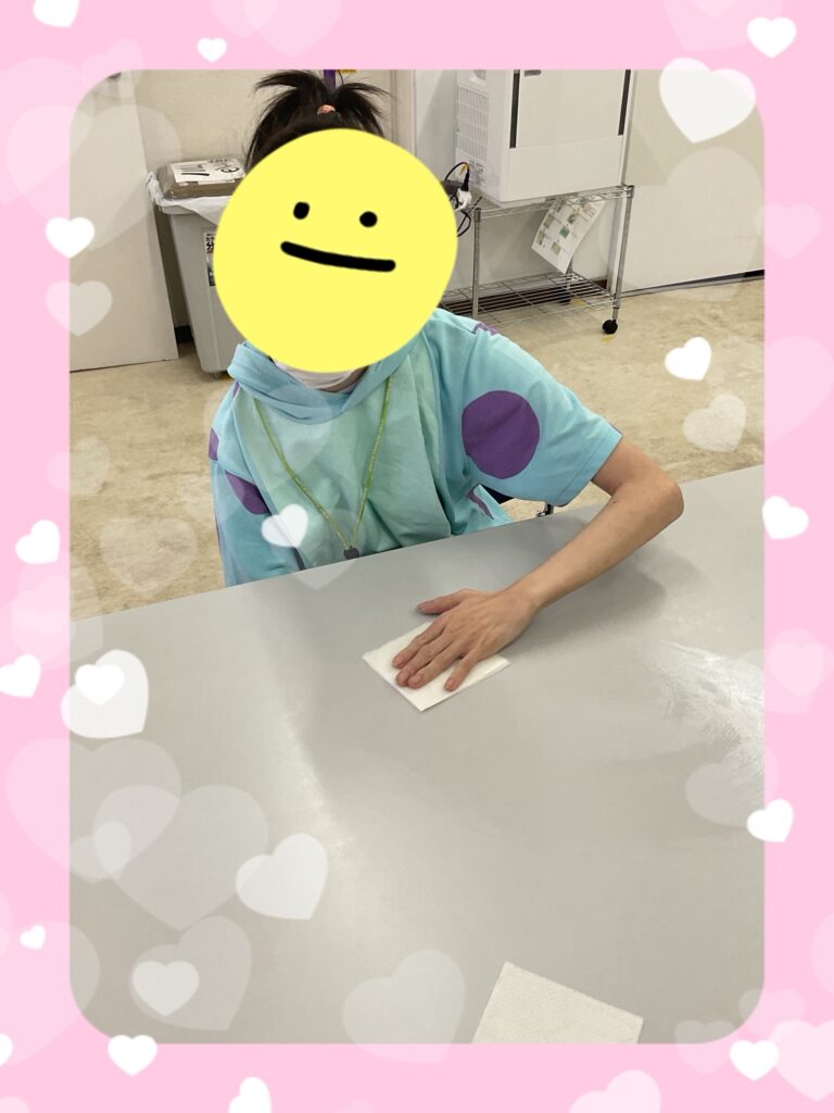 テーブルを拭く作業をしました。