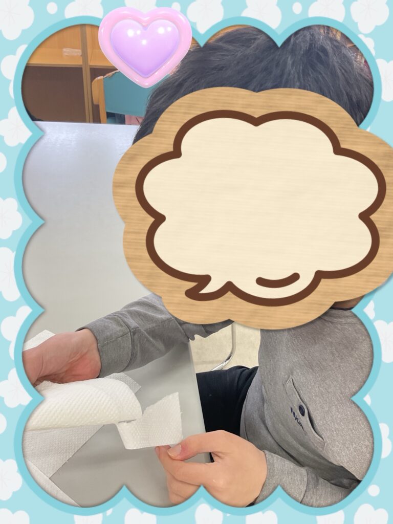キッチンペーパーを折る作業をしました。