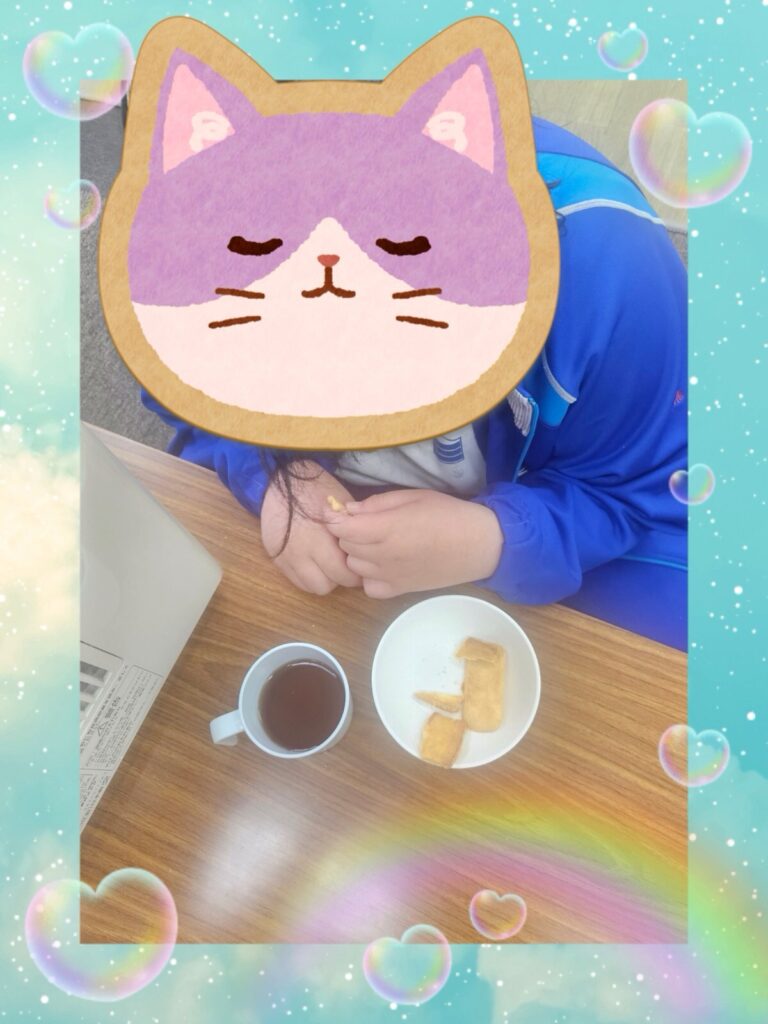 「今日のおやつは何かな?」とワクワク。友達と一緒にニコニコ笑顔で食べるおやつは、一段と美味しく感じられますね!