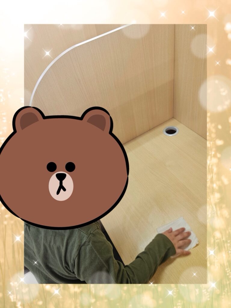「ここもきれいにしなきゃ!」と、自分から進んで隅々までピカピカに拭いてくれました。