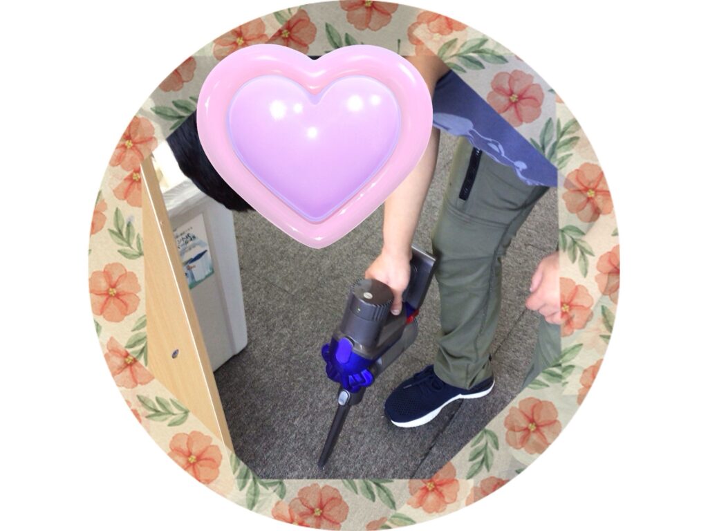 掃除機で床のゴミを吸い取ります。
