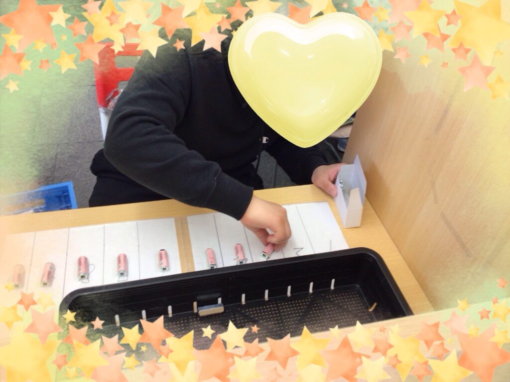 部品のシール貼り