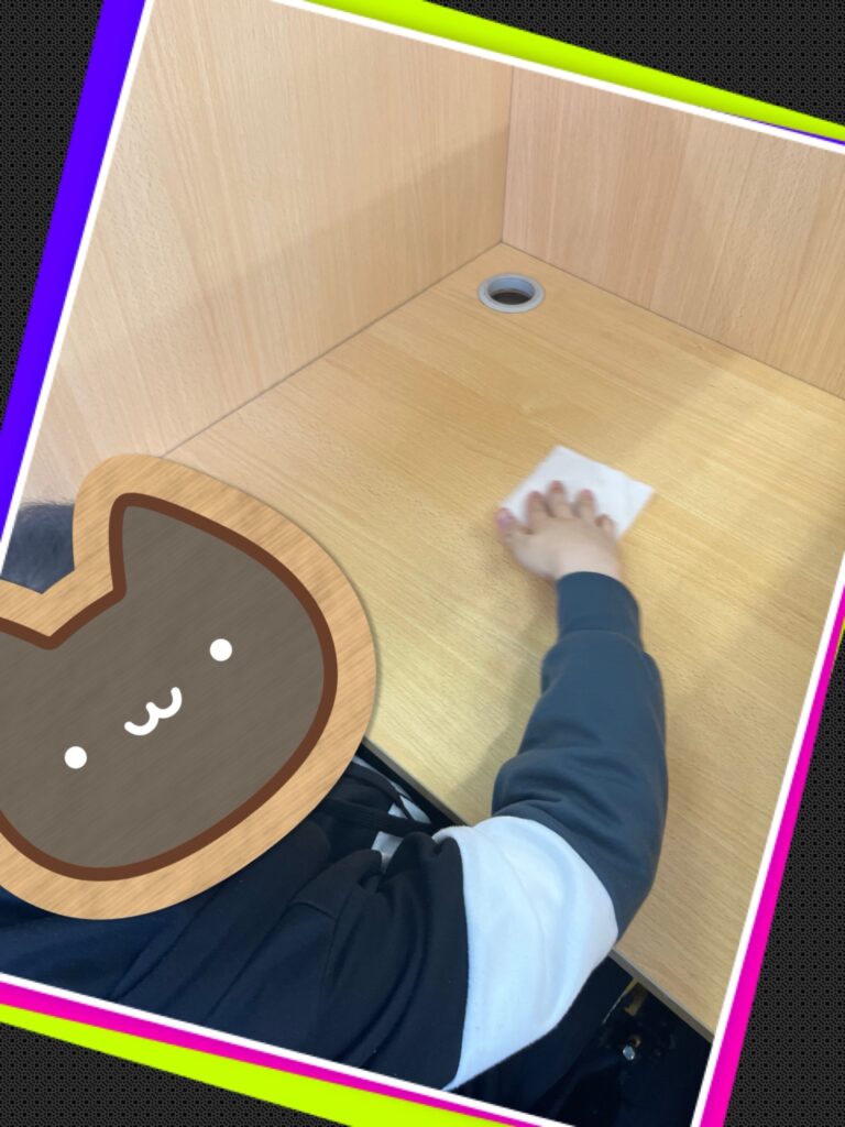 おやつの後にはしっかりと机ふきができましたね!